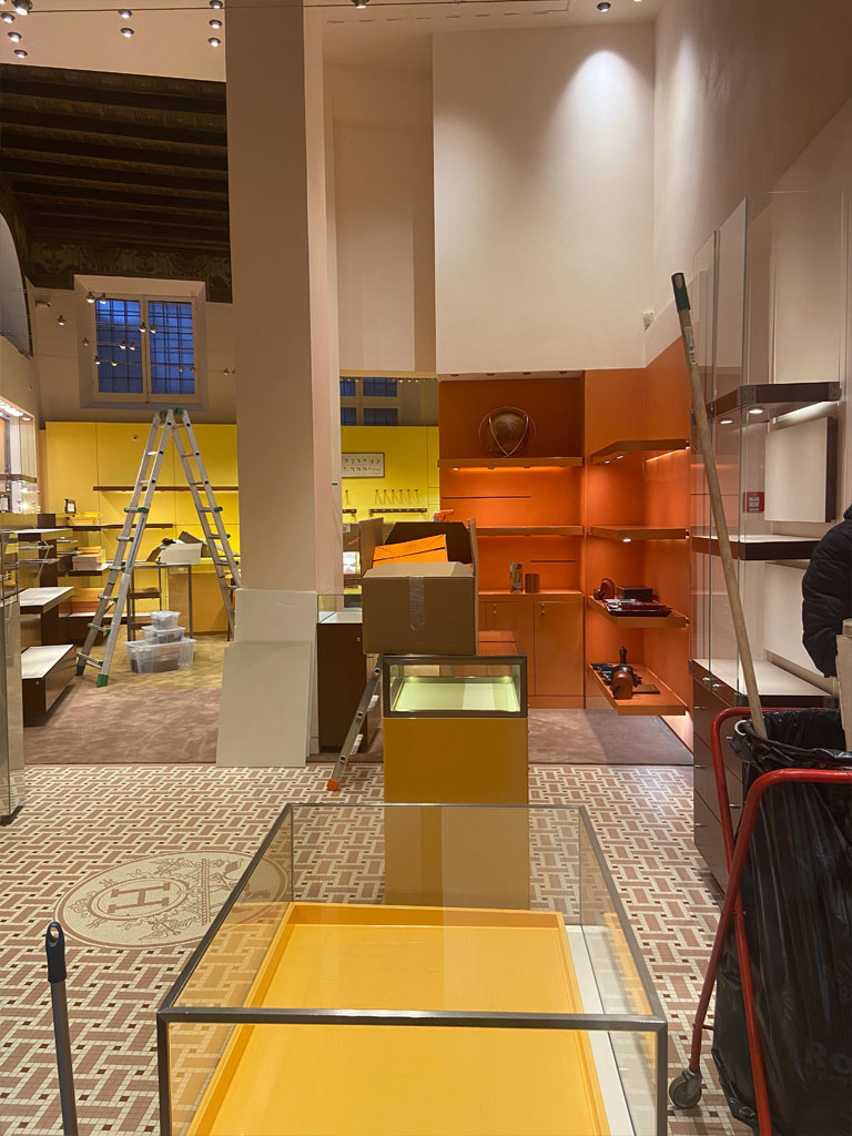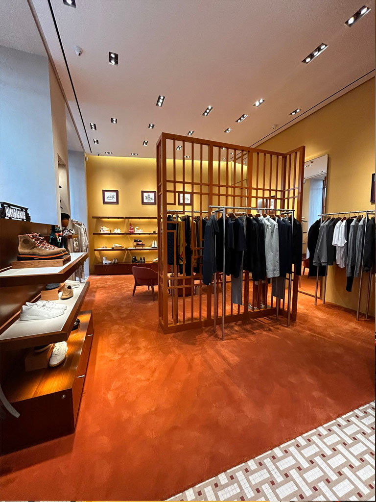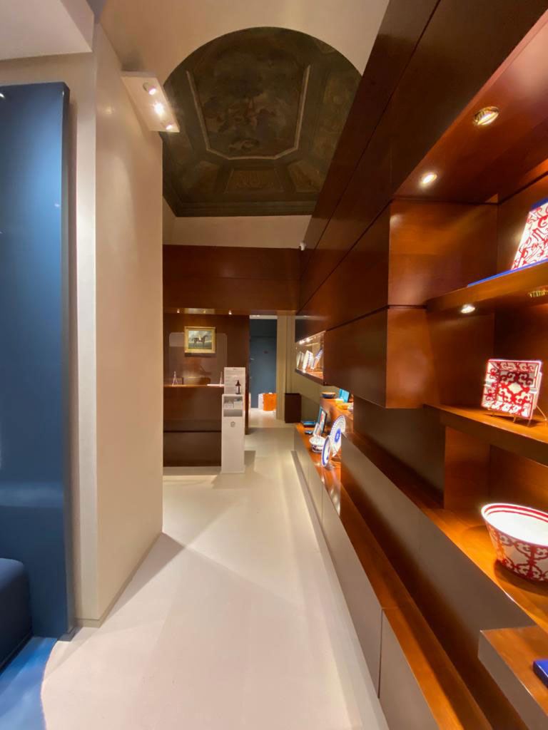 Direzione e coordinamento restauri e allestimenti all’interno di palazzi storici, nel rispetto delle prescrizioni della Soprintendenza, con interventi sartoriali mirati a valorizzare l’identità del marchio nel contesto urbano.