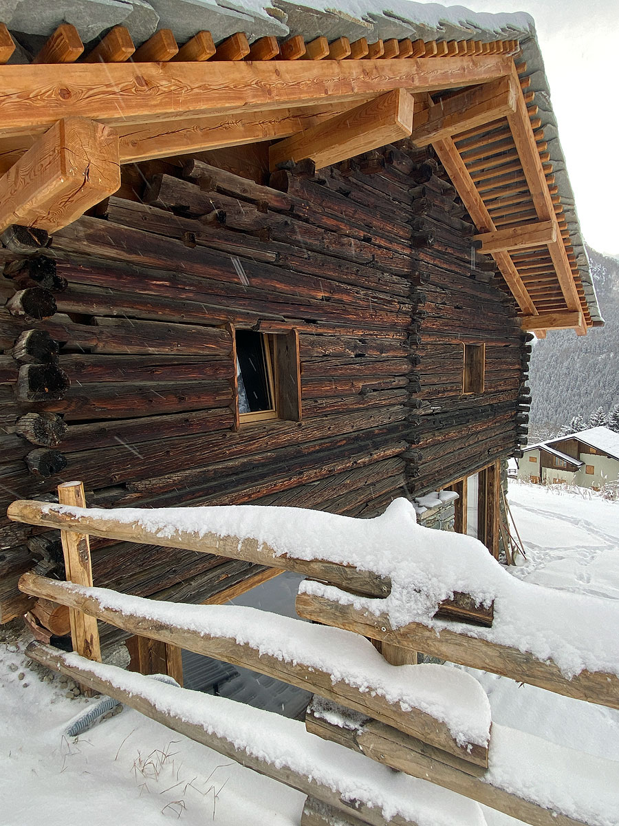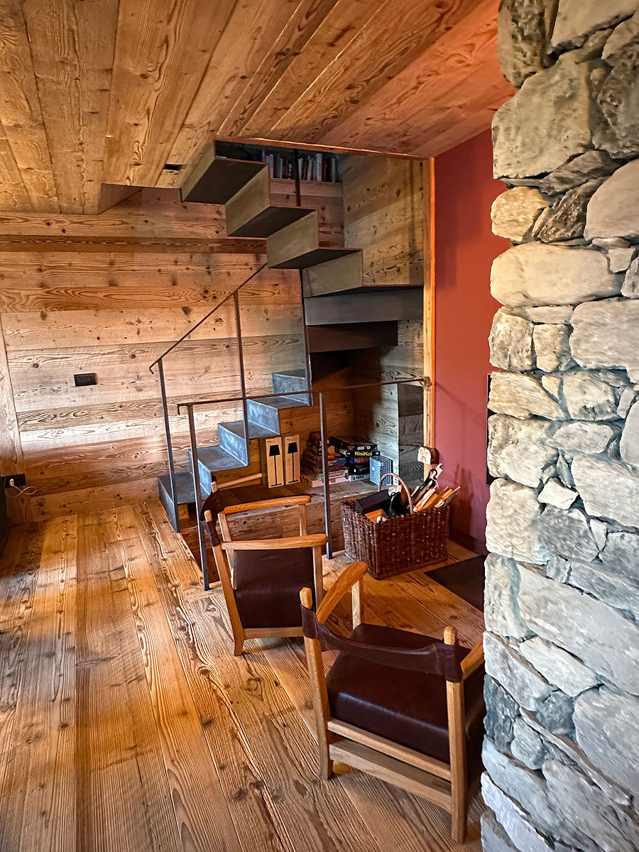 Intervento su un’antica struttura rurale in quota, con recupero filologico del sistema costruttivo tipico del rascard. Lavoro centrato sulla valorizzazione dei materiali originali e sull’inserimento armonico di elementi contemporanei.